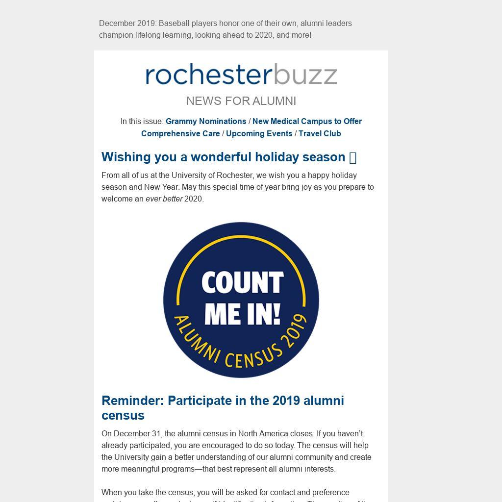 From all of us at the University of Rochester, we wish you a happy holiday season and New Year. May this special time of year bring joy as you prepare to welcome an ever better 2020.