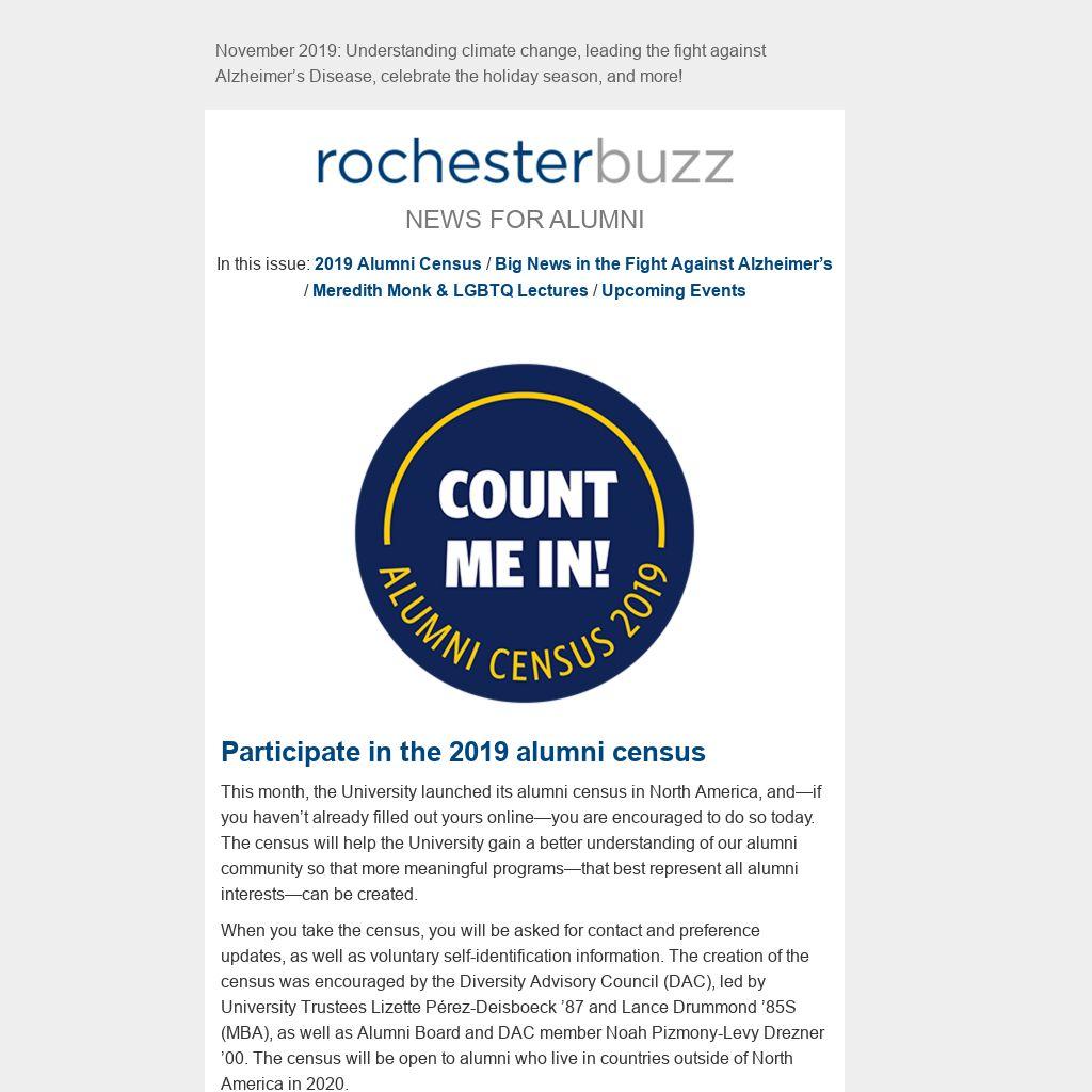 This month, the University launched its alumni census in North America, and—if you haven’t already filled out yours online—you are encouraged to do so today. The census will help the University gain a better understanding of our alumni community so that more meaningful programs—that best represent all alumni interests—can be created.