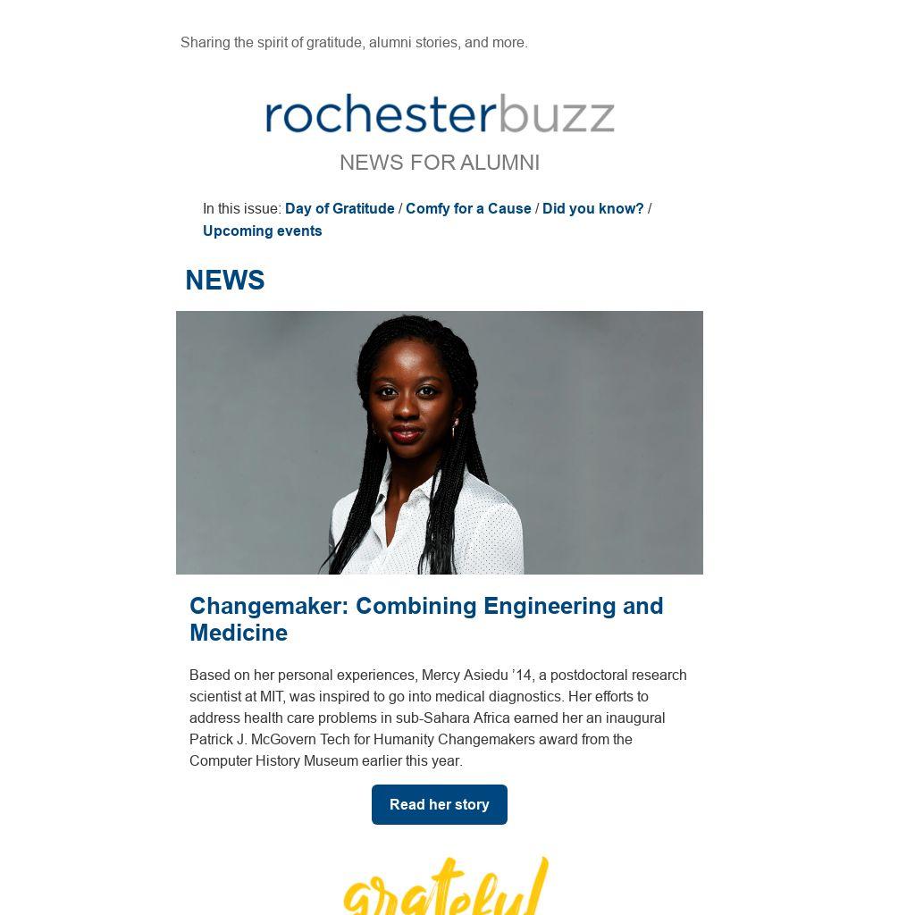 An amazing thing happens when we share the love. So let’s start a chain reaction of gratitude. What are you grateful for? Has the University helped bring something special into your life? Who would you like to thank? Share on social media and help us spread the spirit of gratitude using #URGrateful. Join in and watch the good unfold.