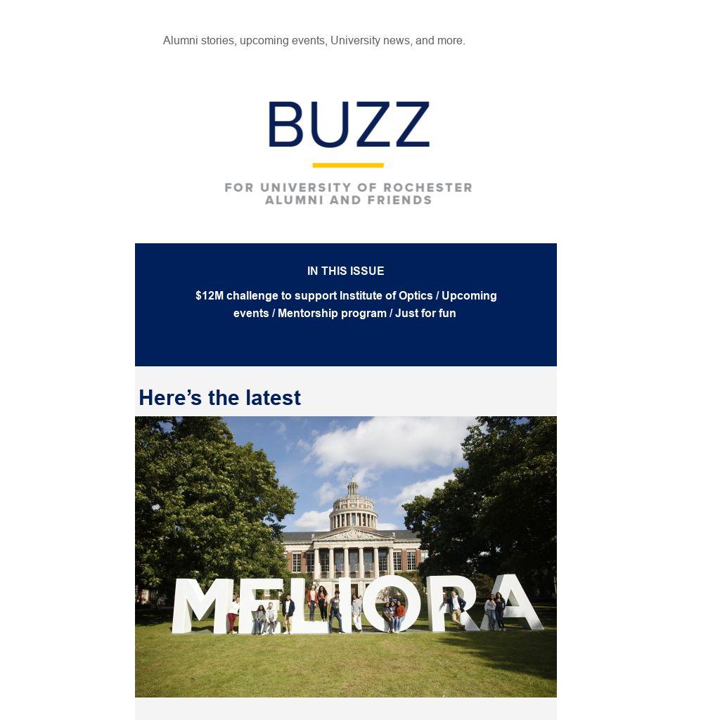 Share experiences, advice, and guidance this fall with the Meliora Collective’s University-wide mentorship program. Mentors and mentees are carefully matched based on their specific preferences and interests and work together over a three-month period. Sign up by October 2 to participate.