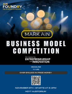 The Mark Ain Business Model Competition (Fall Semester)The Mark Ain Business Model Competition, established in 2007, provides aspiring student entrepreneurs at the University of Rochester an opportunity to present their business idea (in any industry) and compete for $13,500 in cash prizes. Students who wish to enter the competition must be enrolled in the Ain Foundry Program.