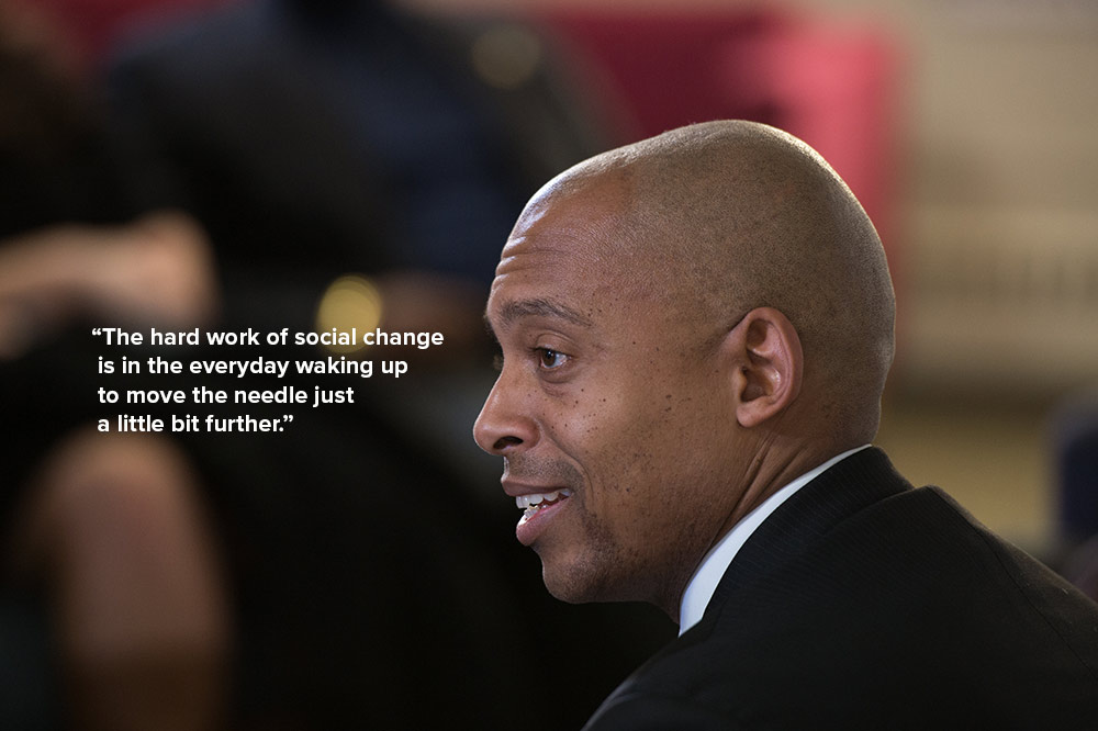 Now serving as professor of history, race, and public policy at the Harvard Kennedy School, Muhammad was executive director of the Schomburg Center for Research in Black Culture when he delivered his address. He also provides media commentary on race and related issues.