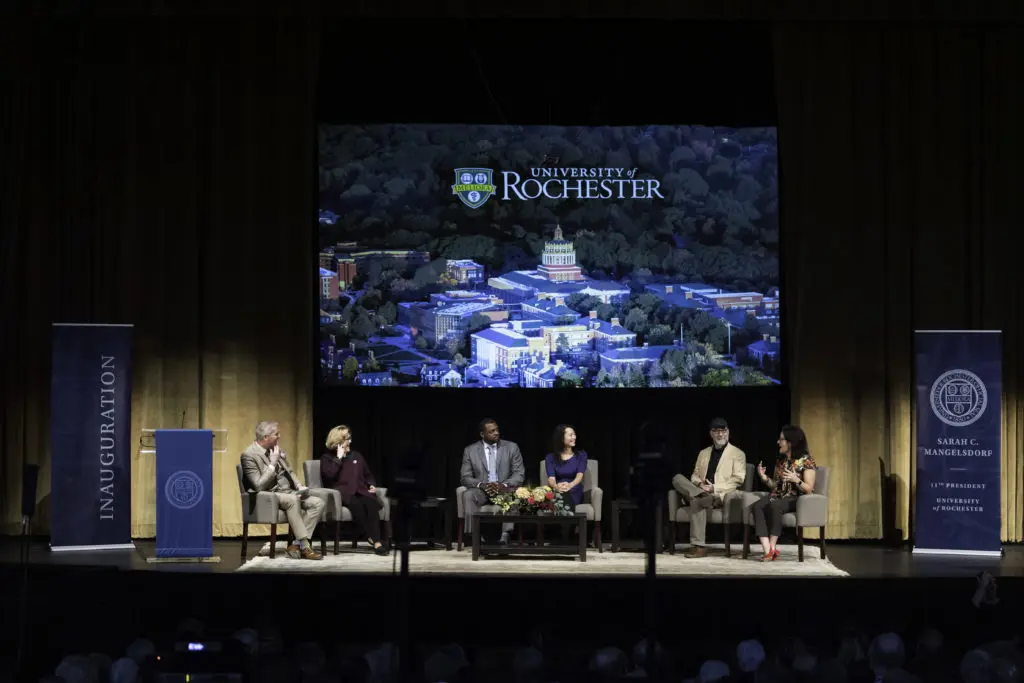 The University of Rochester hosted an intellectual conversation on October 5 with members of Rochester’s faculty on the vital roles of creativity and discovery in the modern university.