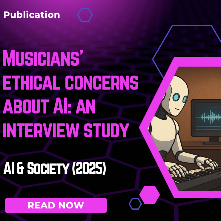AI & Society (Published on Sep 14, 2025) Our latest open access article titled “Musicians’ ethical concerns about AI: an interview study” has been published! Locate/cite this article: Herington, J., Borasi, R., Guerrero, B.J. et al. Musicians’ ethical concerns about AI: an interview study. AI & Soc (2025). https://doi.org/10.1007/s00146-025-02601-6